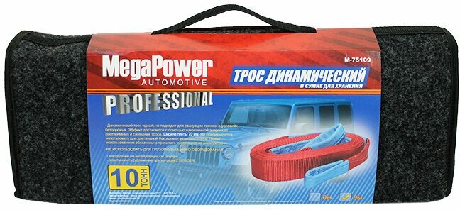 Купить Трос буксировочный динамический Megapower M-75109 ленточный, 10 тонн, длина 9м, без крюков, в сумке .