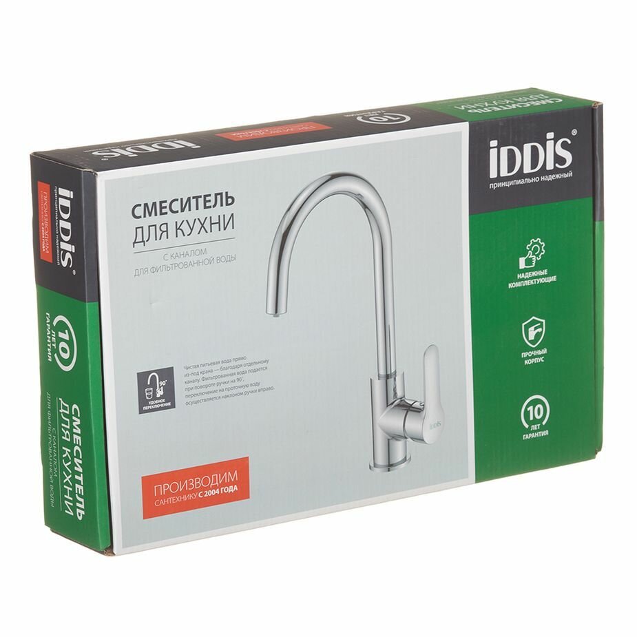 Купить Смеситель для кухни IDDIS IDDIS, CUBSBFJi05 Cuba Смеситель для кухни, с каналом для фильтрованной воды, глянцевый хром