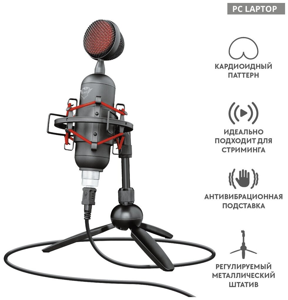 Потоковый USB-микрофон Trust GXT 244 Buzz, черный