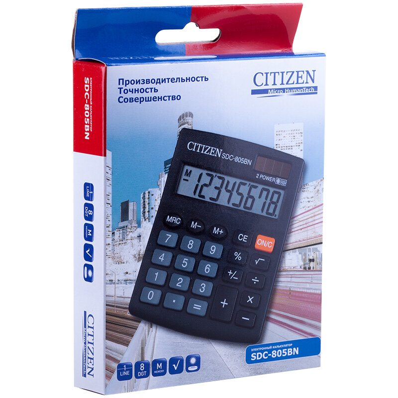 Калькулятор CITIZEN SDC-805BN, 8-разрядный, черный