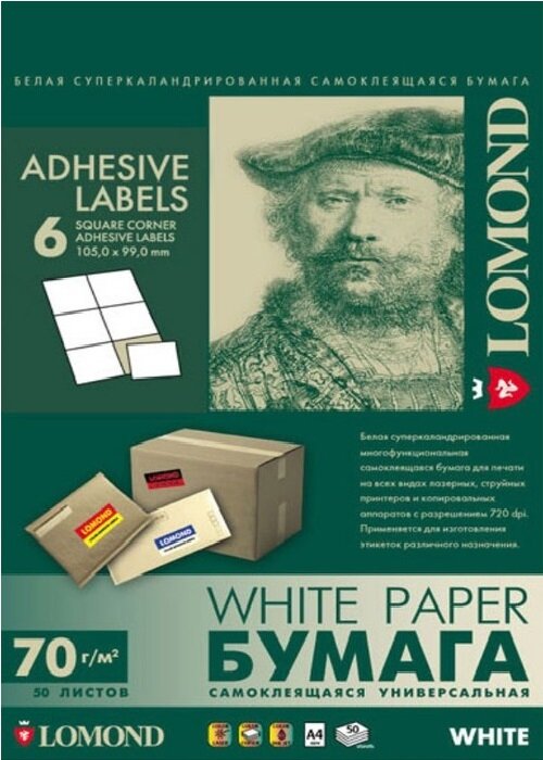 Купить Самоклеящаяся бумага LOMOND универсальная для этикеток, A4, 6 делен. (105 x 99 мм), 70 г/м2, 50 листов