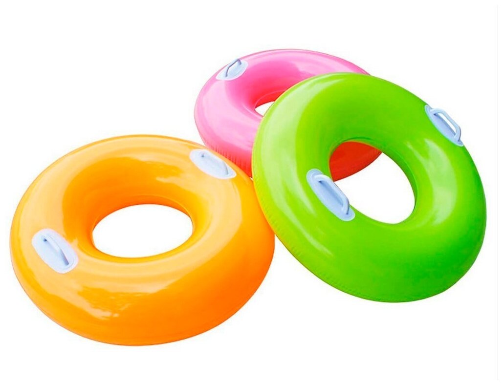 Надувной круг 76 см, с ручками, от 8 лет, 3 цвета, Intex «Глянец» оранжевый, арт. 59258