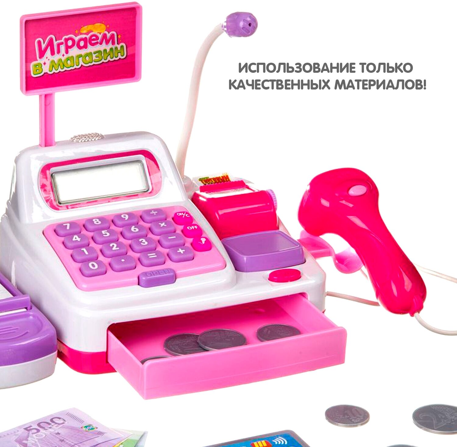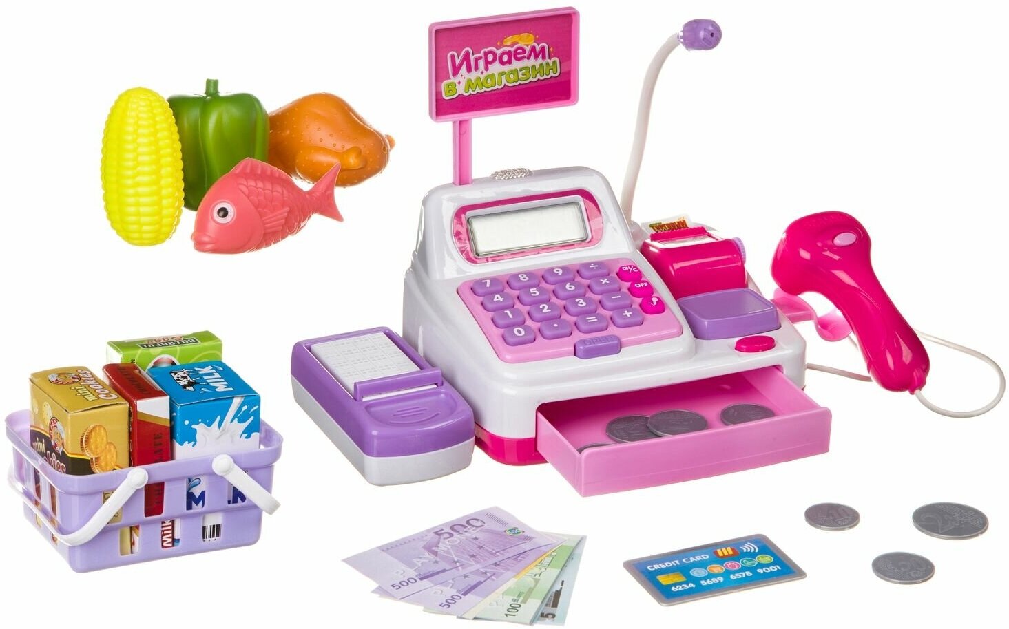 BeiBe Good Кассовый аппарат с аксессуарами 25 предметов, звук, розовый 888J с 3 лет