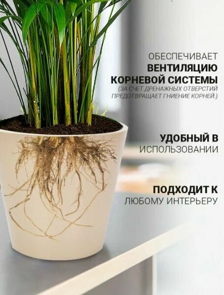 | Минусы: | Когда земля и цветок в горшке (он становится тяжелым), нет возможности приподнять внутреннюю его честь, чтобы проверить наличие воды на дне кашпо: края не снабжены утолщениями или небольшими ручками и рука соскальзывает. |