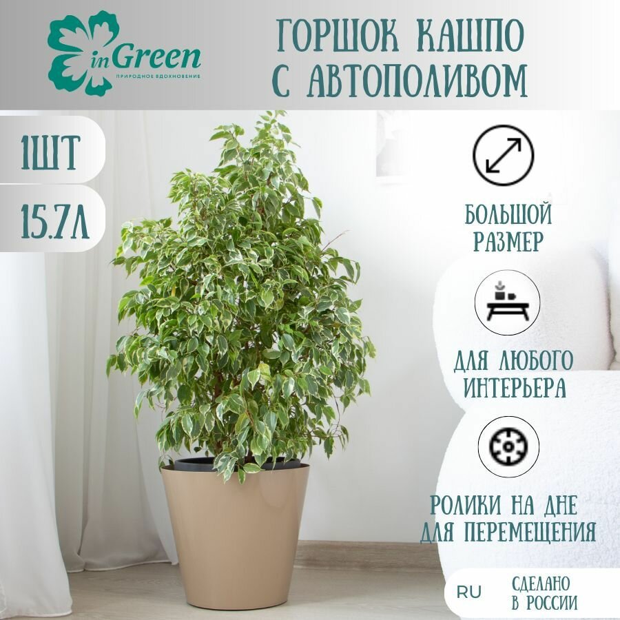 Горшок для цветов INGREEN "London" (оливковый, колесики), 15,7 л ING6207ОЛ