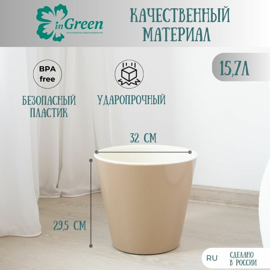 Горшок для цветов InGreen / Ингрин London с дренажной вставкой пластик белый диаметр 32cм объем 15.7л