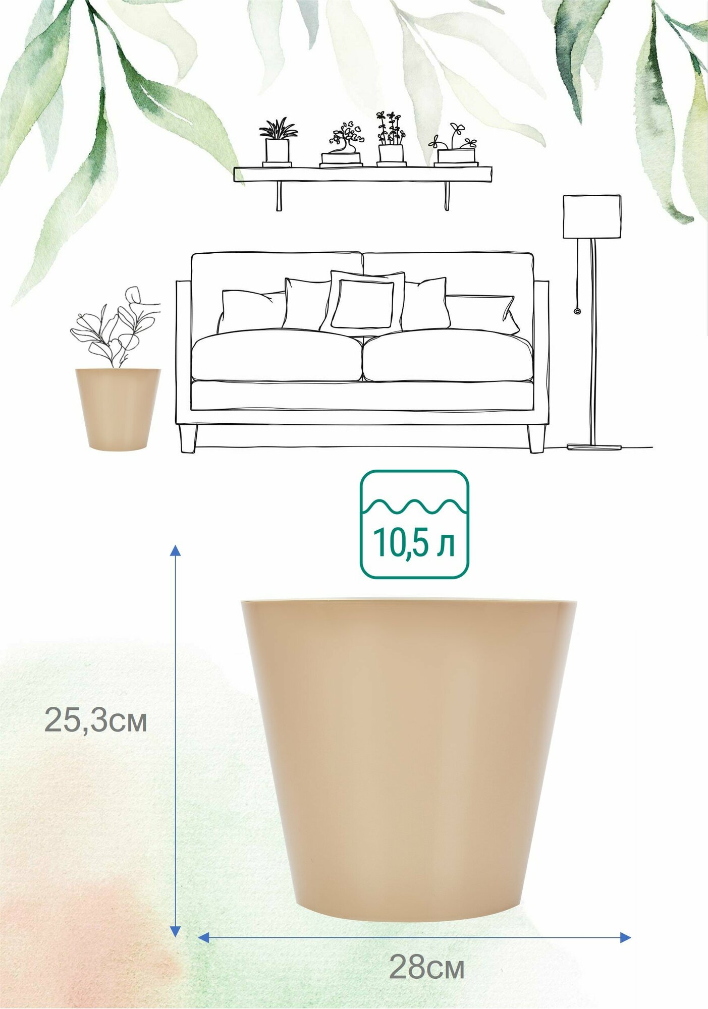 Горшок для растений с дренажной вставкой 10.5 л, молочный шоколад 6208