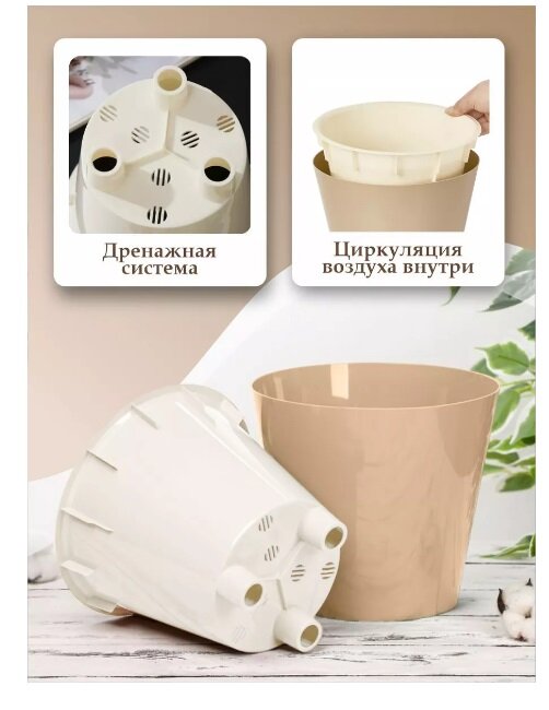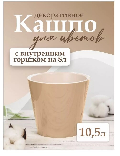 Горшок для растений с дренажной вставкой 5л, молочный шоколад