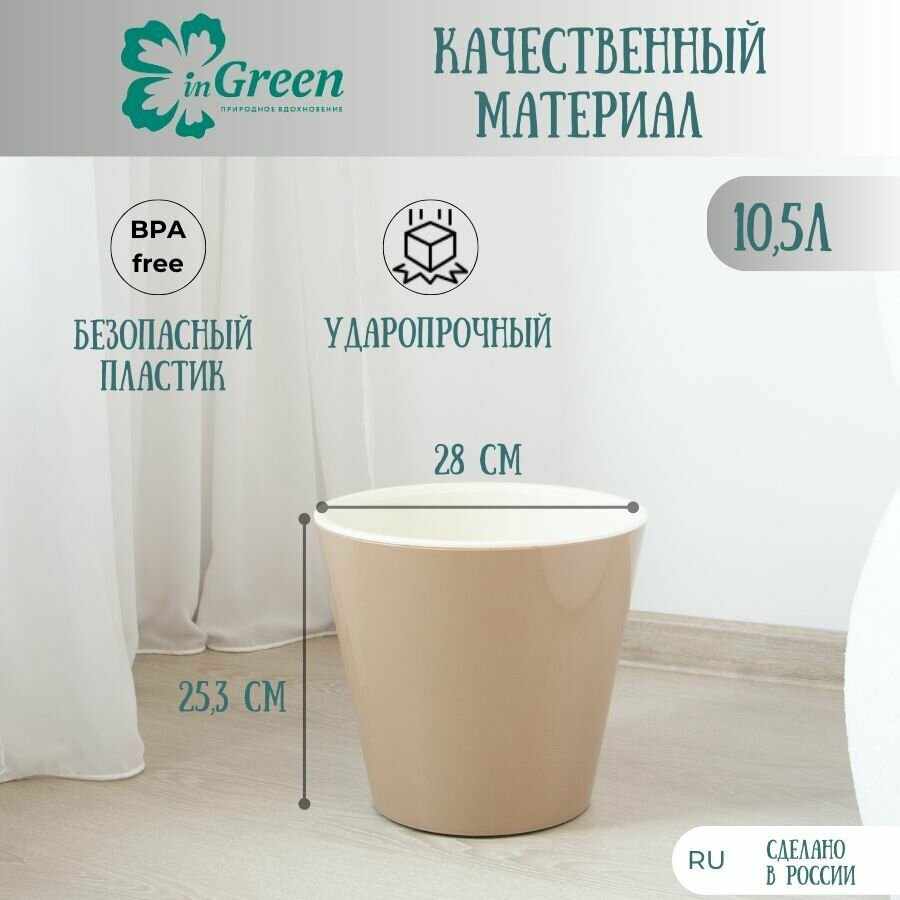 Купить Горшок для цветов Ingreen London 28 см v10.5 л пластик цвет молочный шоколад