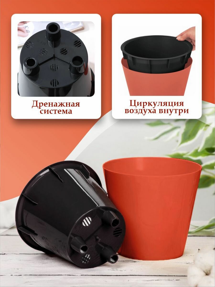 Горшок для растений с дренажной вставкой 3,3л, терракотовый