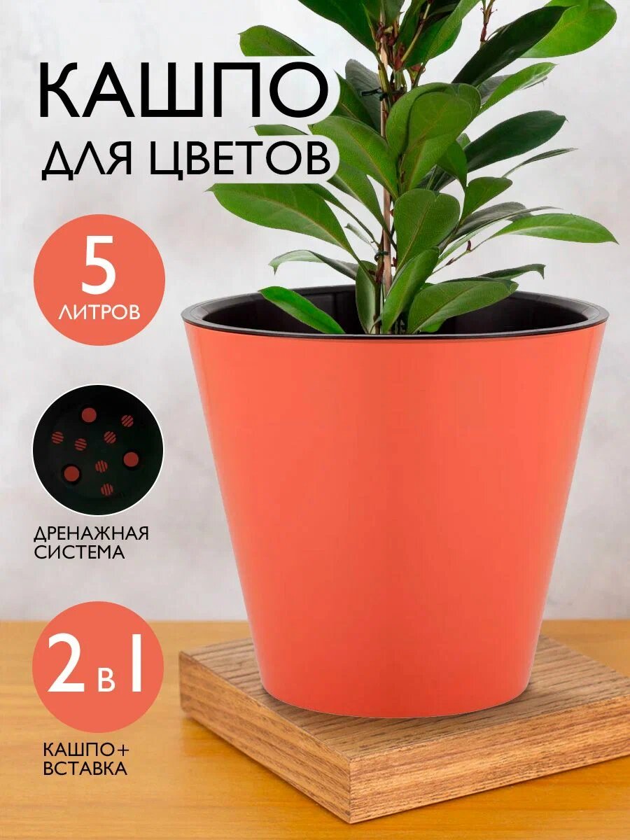 Горшок для растений с дренажной вставкой 5л, молочный шоколад