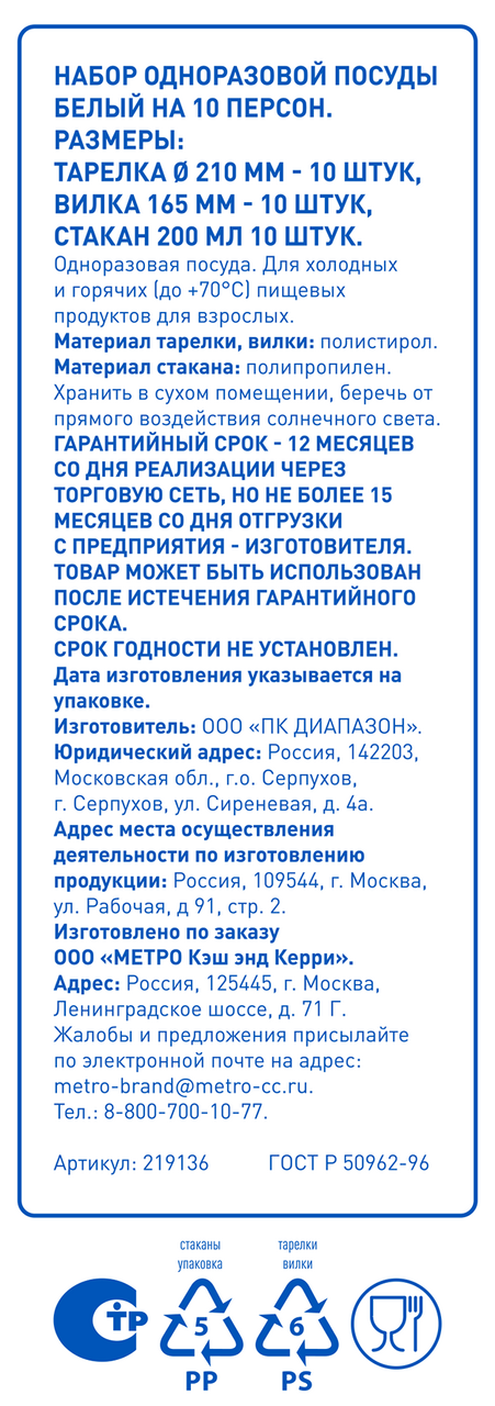 aro Набор одноразовой посуды белый на 10 персон интересное: