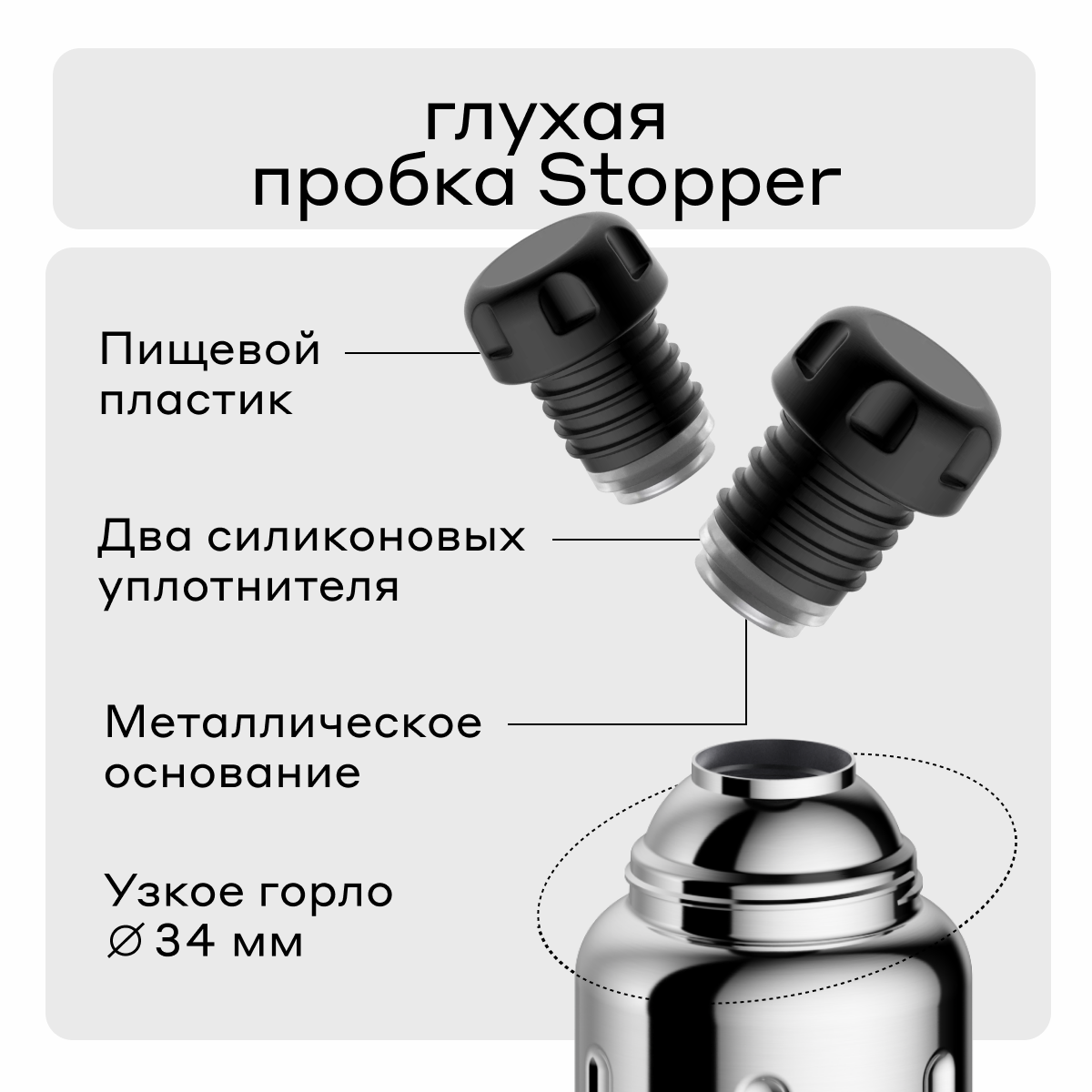 | Минусы: | В пробке есть силиконовый уплотнитель, который контактирует с содержимым.