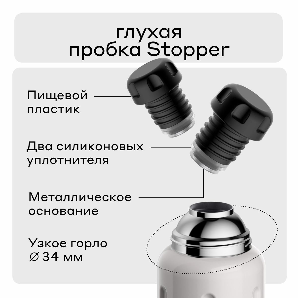 | Минусы: | В пробке есть силиконовый уплотнитель, который контактирует с содержимым.
