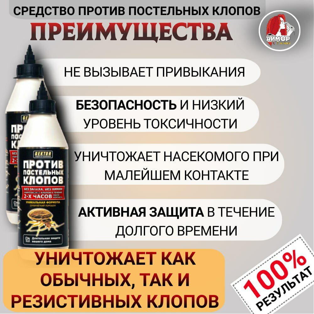 | Плюсы: | Нет клопов, не вызывает аллергию, безопасен для детей и животных. |