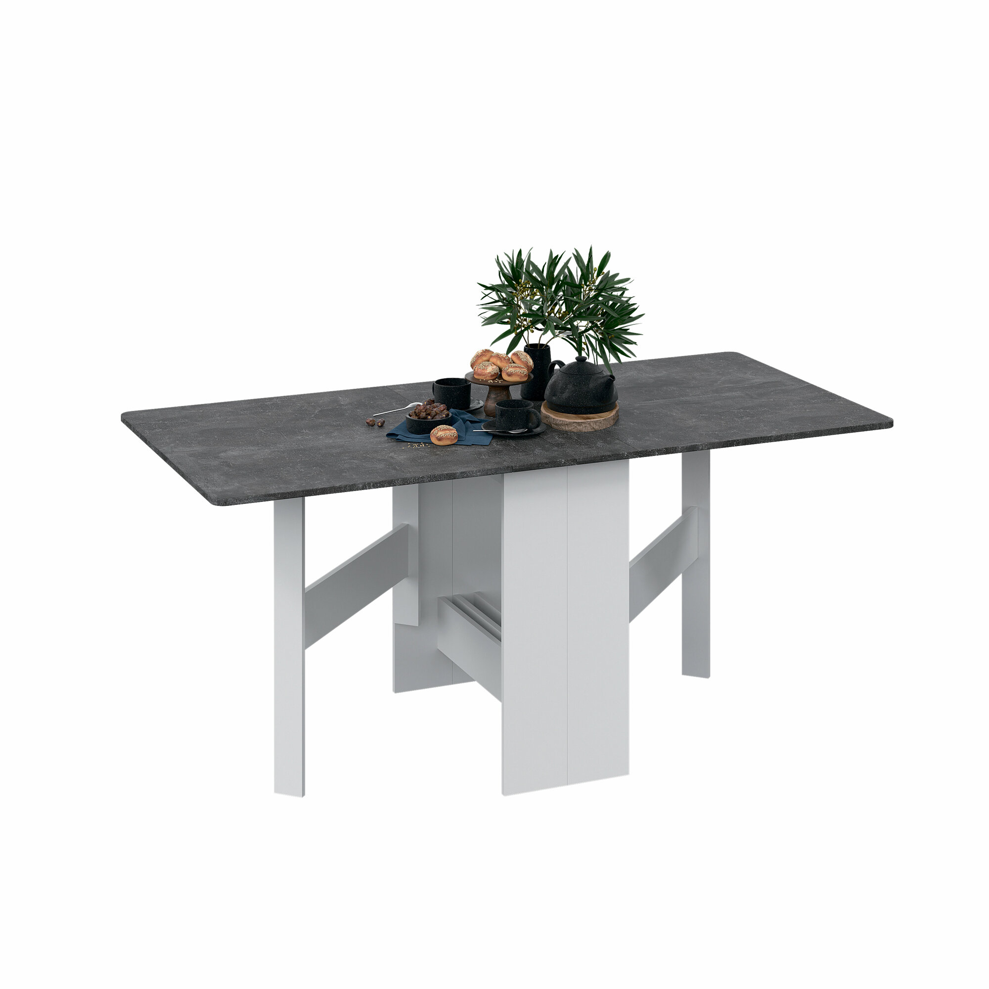 Стол-книжка раскладной, стол обеденный книжка белый серый, (ВхДхГ) 75х227х80 см, Тип 2