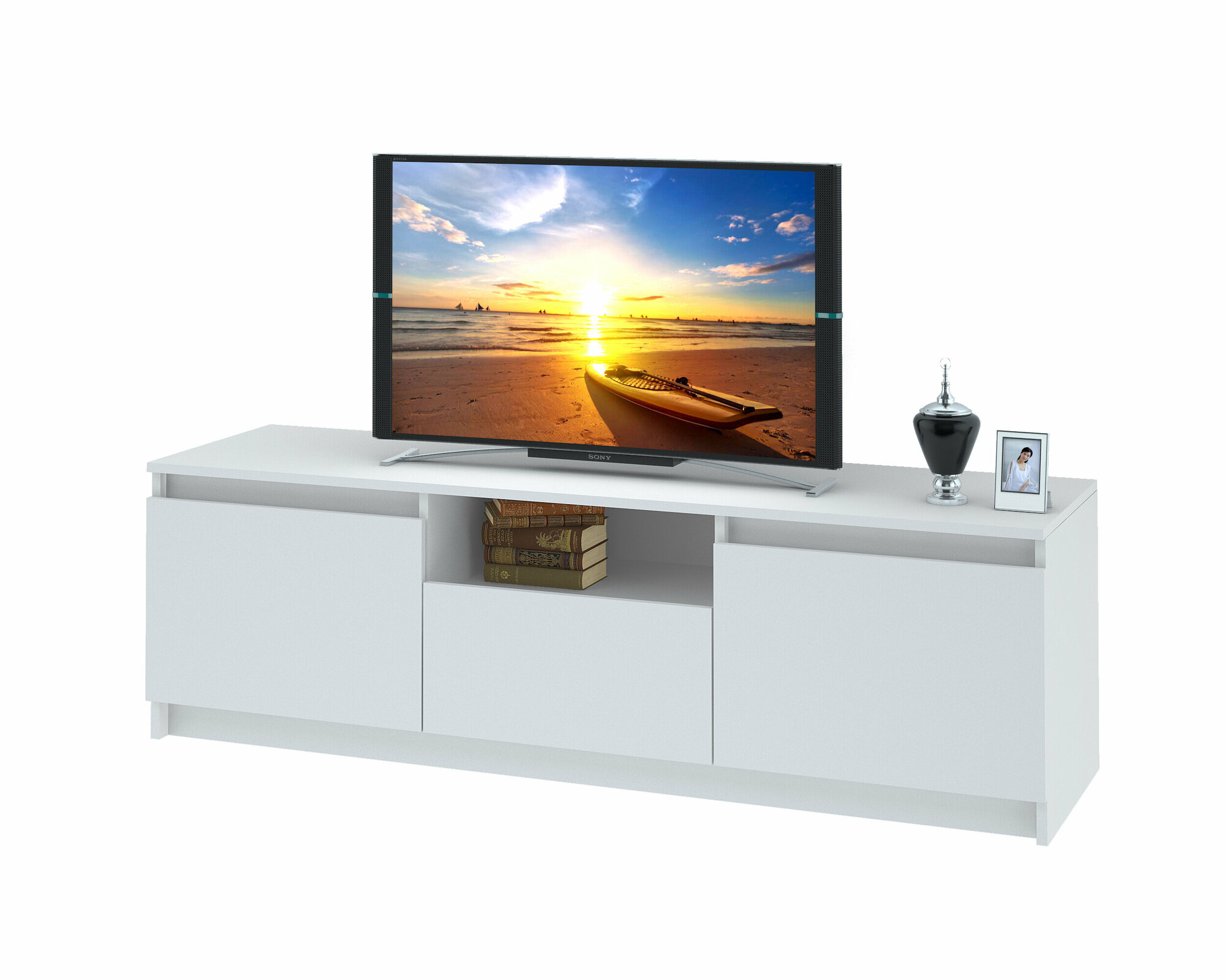 Ларго тумба ТВ 140 х 44,6 х 44,3 см, 2 двери, 1 ящик, ЛДСП Белый