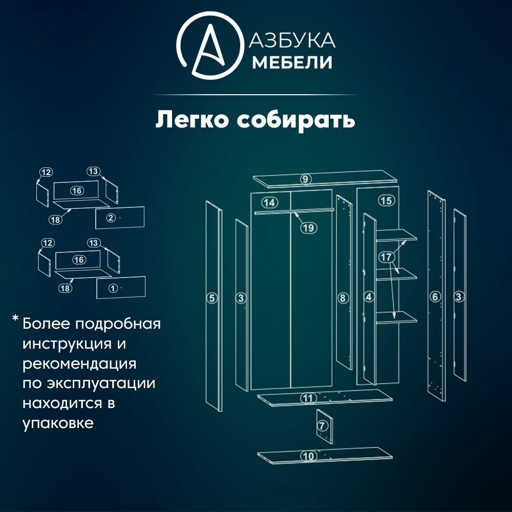 Шкаф для одежды распашной Нонтон Луас, 120 см, 7 полок и штанга, белый глянец
