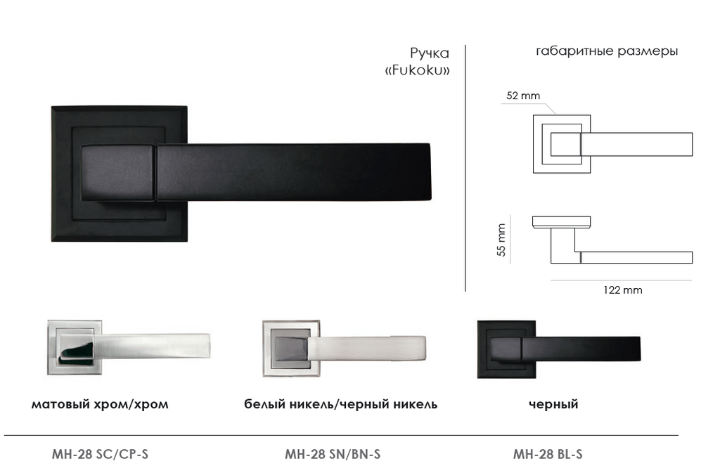 FUKOKU, ручка дверная межкомнатная MH-28 BL-S, на квадратной накладке, цвет - черный