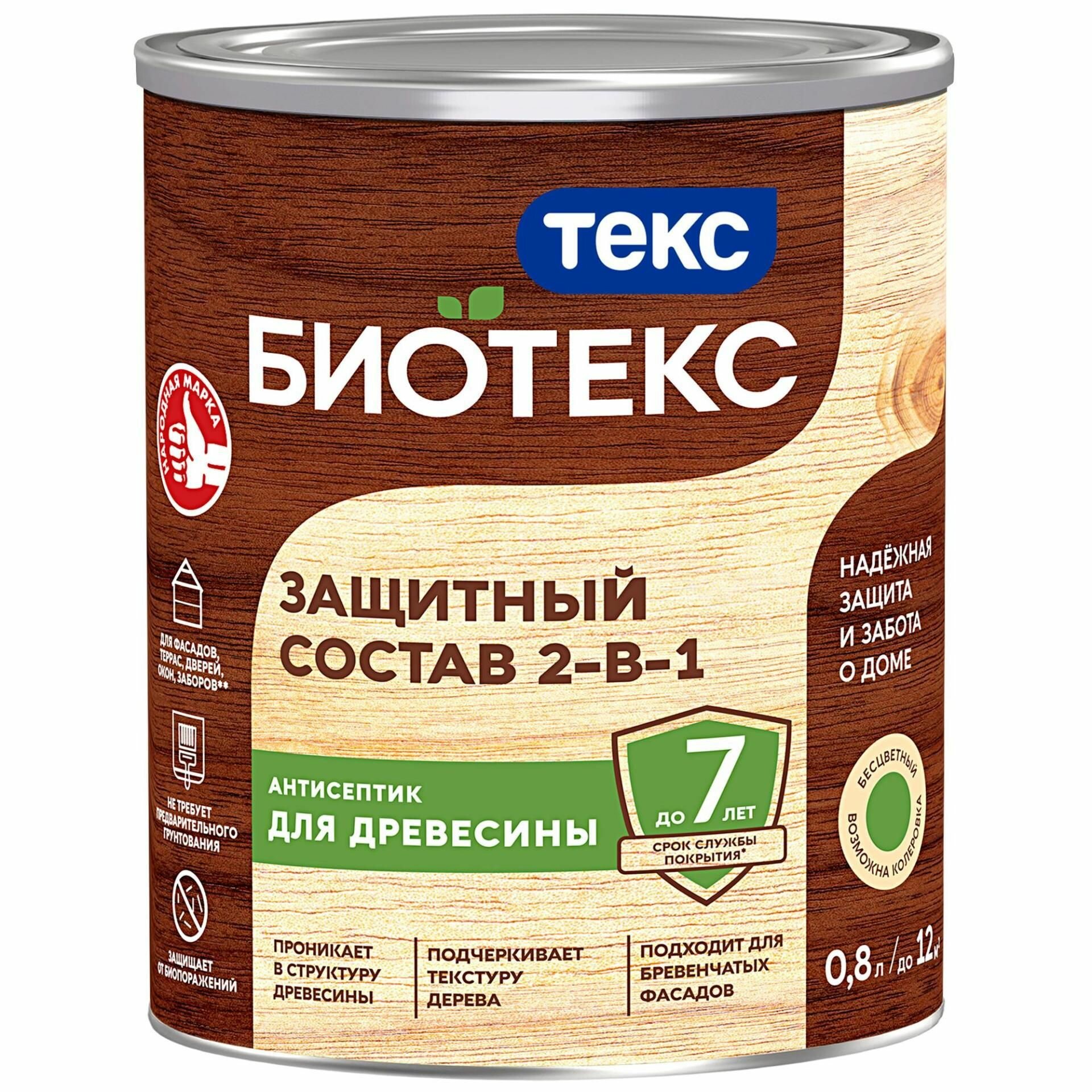 Защитный Состав 2-в-1 Текс Bioteks 0.8л Сосна, не Требует Предварительного Грунтования для Наружных Работ / Текс Биотекс.
