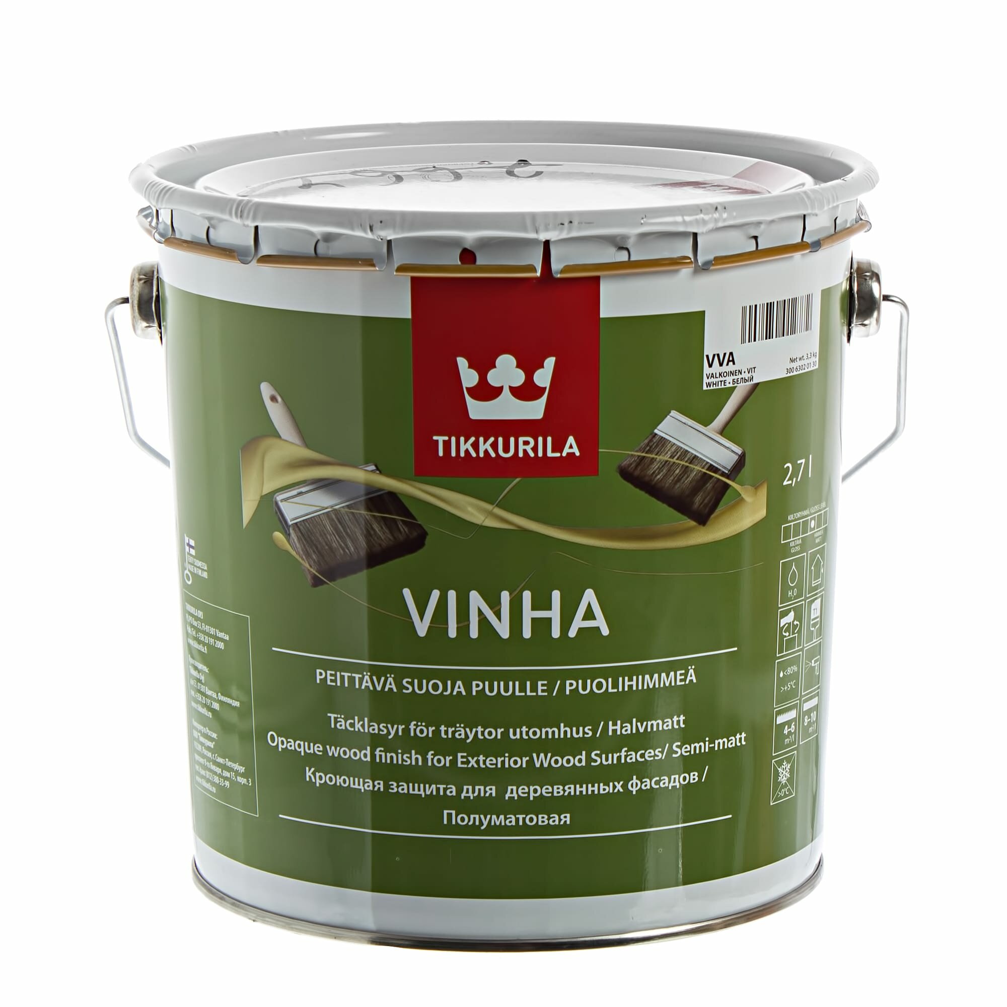 Tikkurila Vinha кроющий антисептик для древесины водорастворимый (белый, полуматовый, база VVA, 9 л)