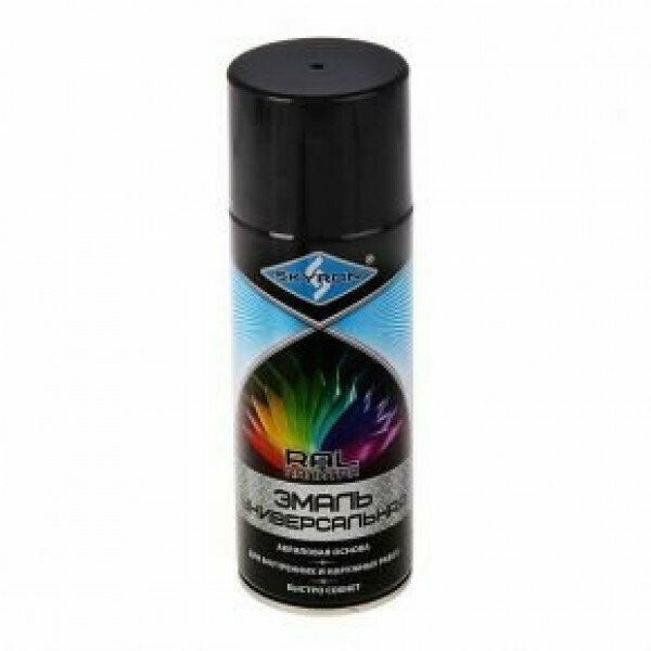 Эмаль Skyron универсальная акриловая, черный глянец RAL 9005, глянцевая, 520 мл, 1 шт.