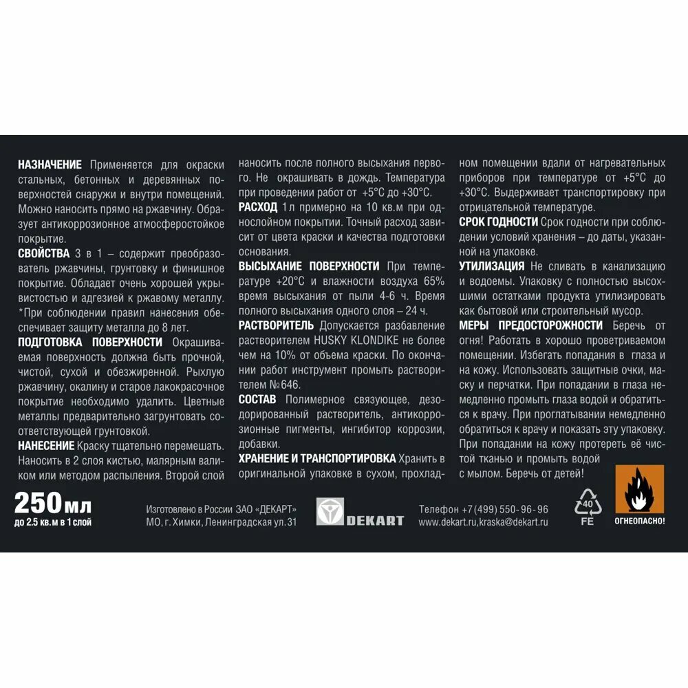 СохранитьКраска по металлу HUSKY KLONDIKE (Красная RAL 3020) 0,25 л интересное: