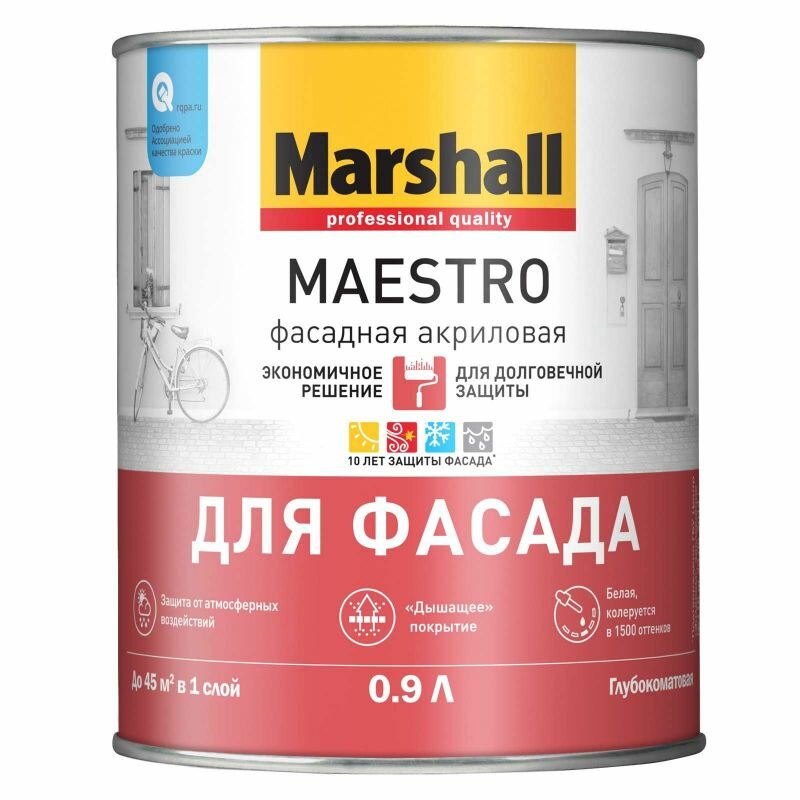 Краска Marshall Maestro для Фасада фасадная акриловая для долговечной защиты 9 л белая
