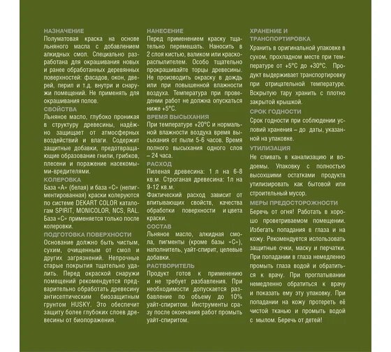 Краска для дерева HUSKY Siberian полуматовая база C 0,9 л