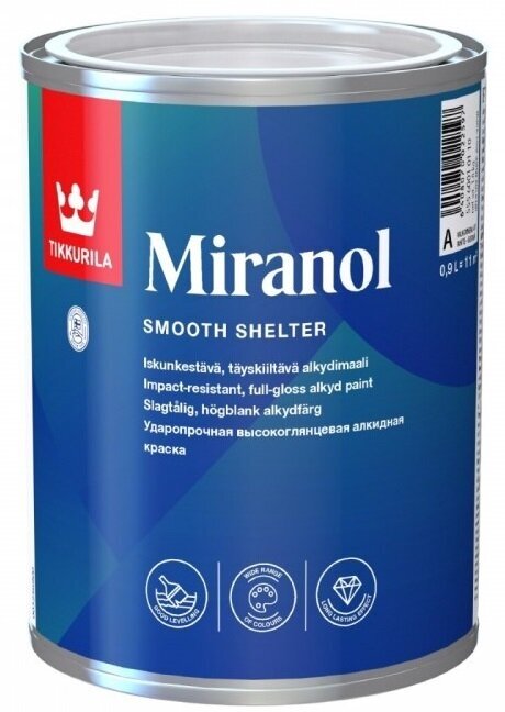 Tikkurila Miranol (Тиккурила Миранол) ударопрочная алкидная краска , вес:0.9л , блеск:глянцевый , цвет:белая Tikkurila Miranol