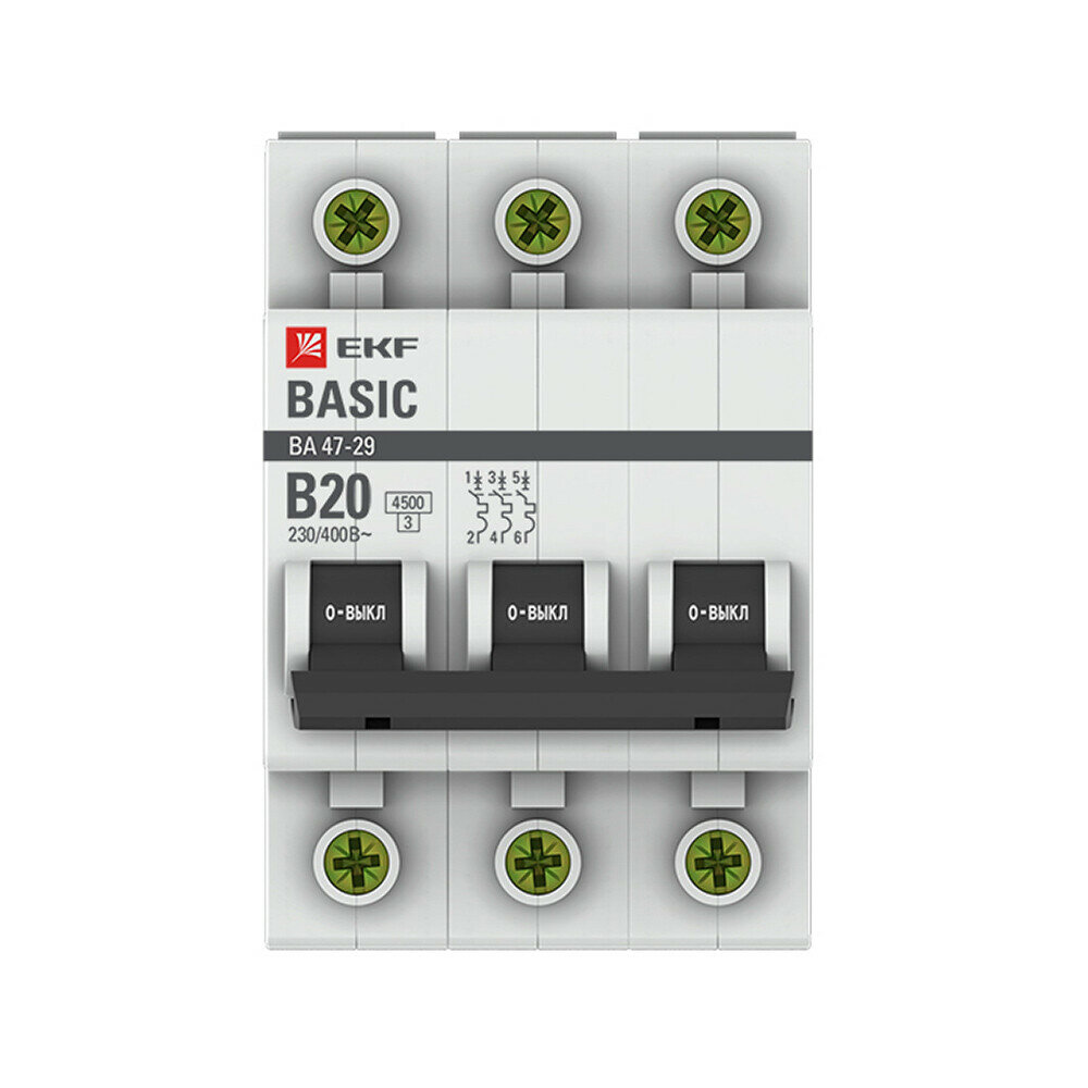 Автоматический выключатель 3P 20А (B) 4,5кА ВА 47-29 Basic | код. mcb4729-3-20-B | EKF ( 1шт. )