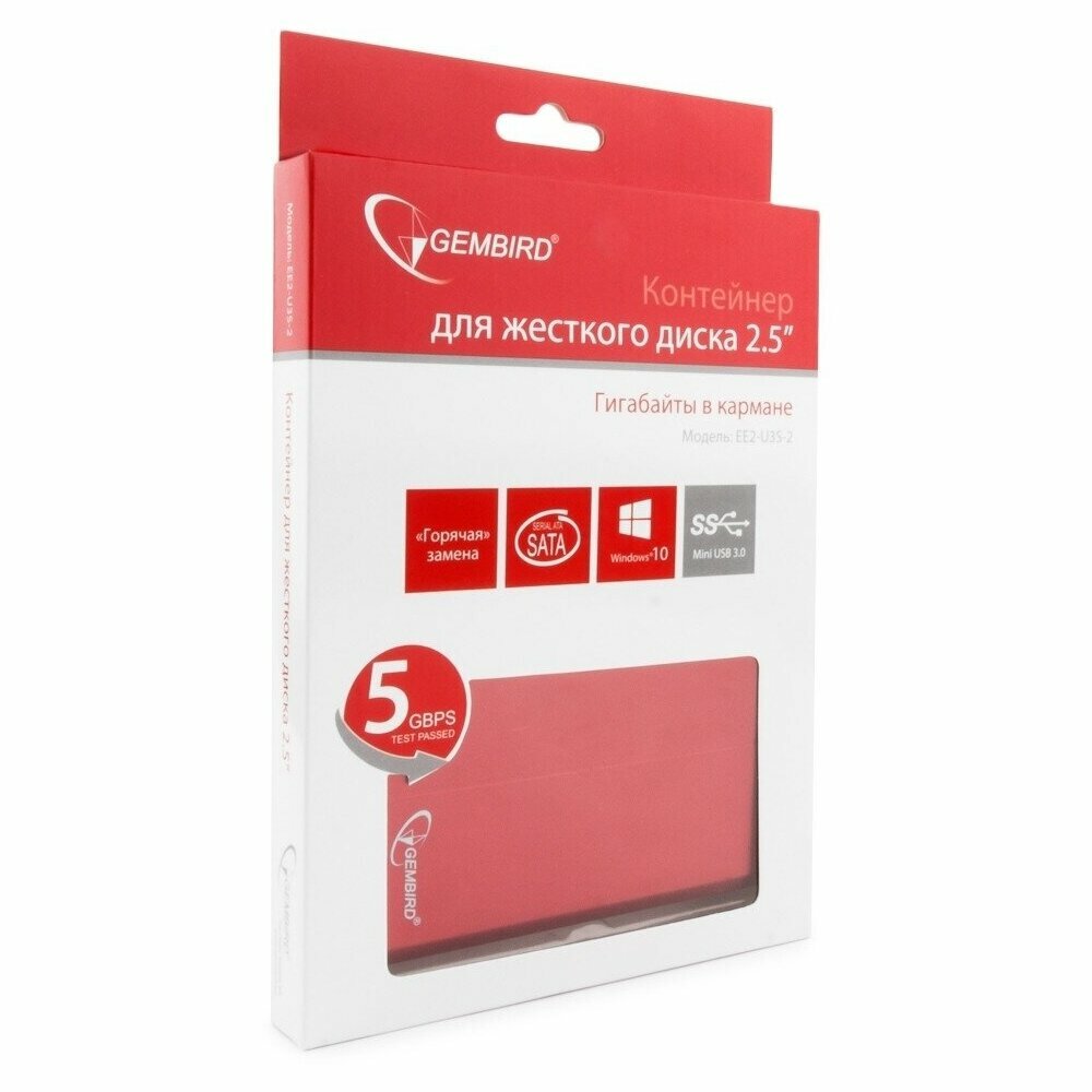 Gembird (ee2-u3s-2-r) (ext BOX для внешнего подключения 2.5" Sata Hdd, Usb3.0, Aluminum)