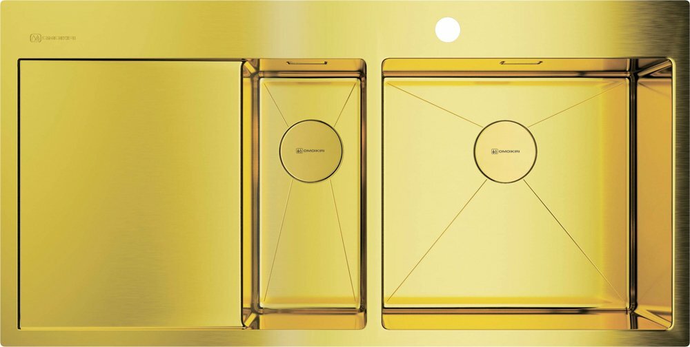 Кухонная мойка OMOIKIRI Akisame 100-2-LG-R 4973090 (1000 x 510 мм), врезная, нержавеющая сталь, светлое золото