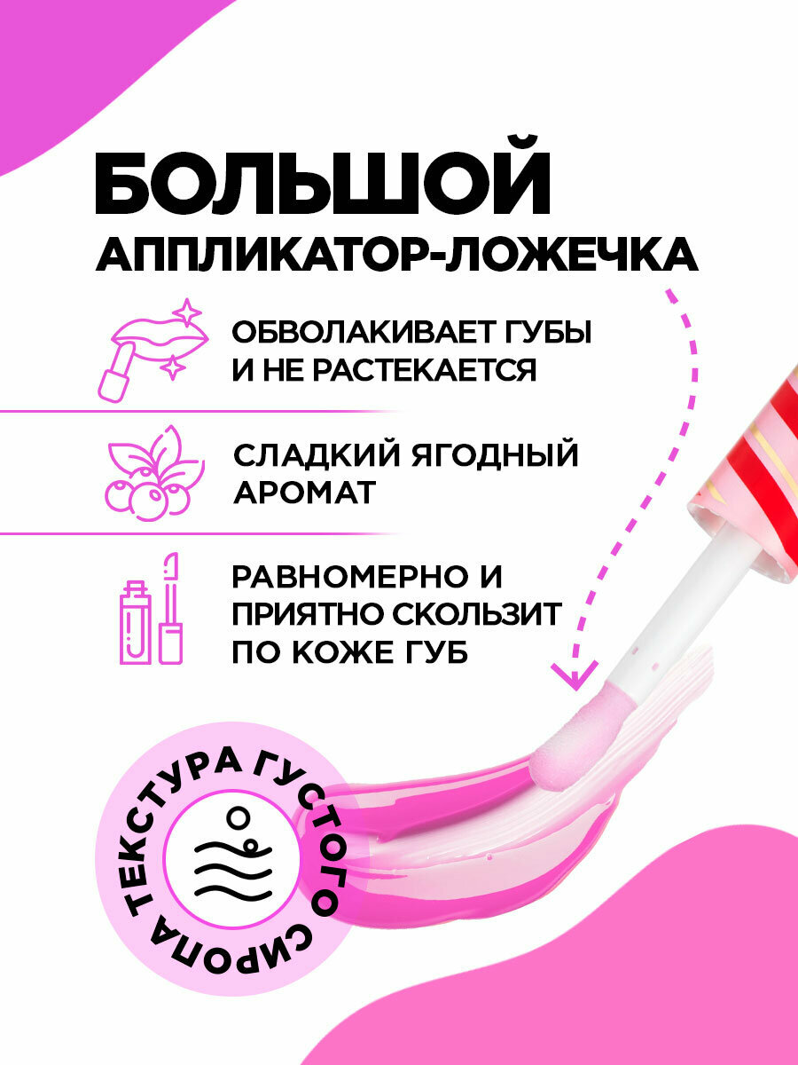 | Плюсы: | Губы визуально становятся более пухлыми. Приятный эффект стекла на губах |