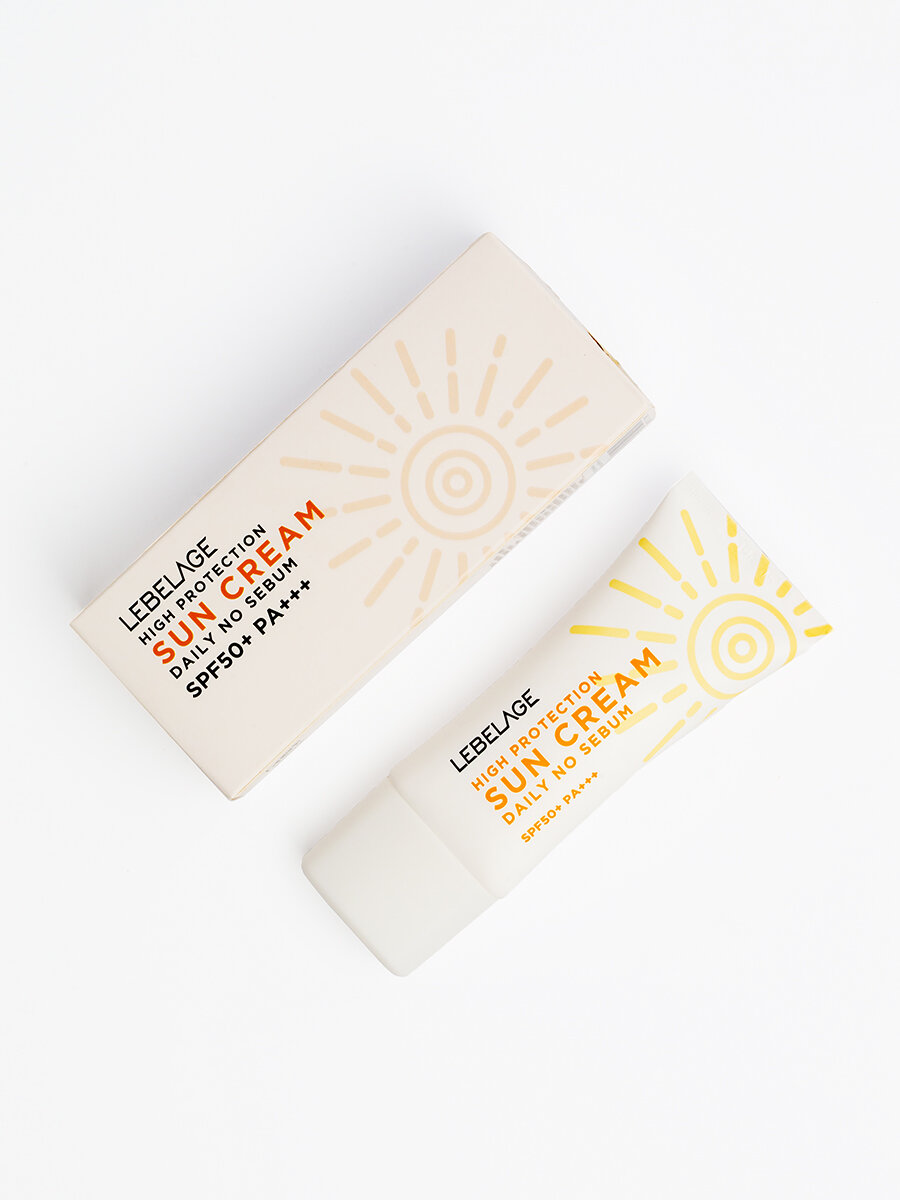 Lebelage Sun High Protection Себорегулирующий крем от солнца для умывания, для снятия остатков макияжа, для кожи лица, шеи и зоны декольте с высоким фактором SPF50+PA+++, корейская косметика. 30 мл