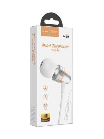 Купить Проводные наушники HOCO M59 Magnificent, Jack 3.5mm, серебряный, контроллер с микрофоном