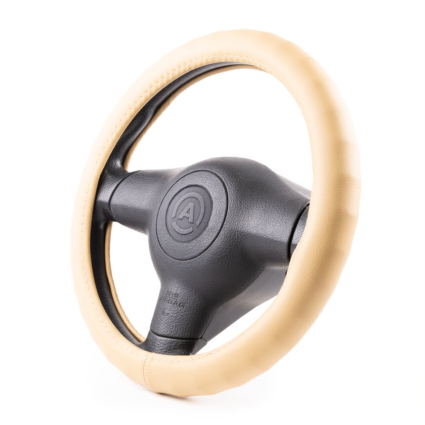 Оплетка руля "AUTOPROFI" с увеличенным обхватом 9 см., композитная экокожа гладкая, ребристая основа. бежевый, разм. М,