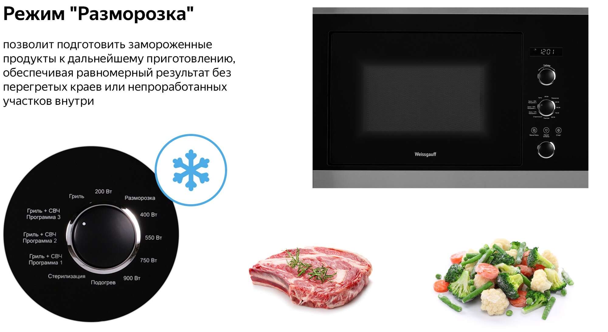 СохранитьМикроволновая печь WEISSGAUFF HMT-257, встраиваемая, 25л, 900Вт, черный [426287] интересное: