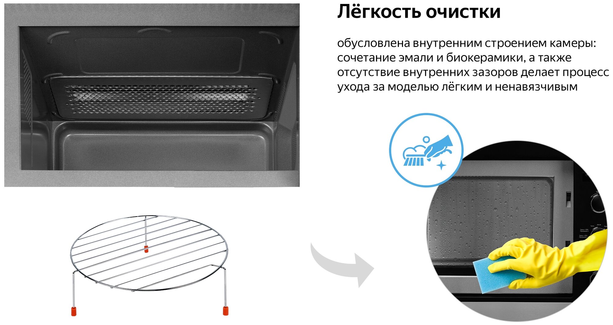 | Плюсы: | Приятный дизайн, наконец-то греет еду, а не тарелку, тихо работает за счёт отсутствия вращающейся стекляшки. Максимально интуитивно понятный интерфейс, удобная настройка таймера. Отсутствие съёмной рамки и наличие регулируемых по высоте ножек. |