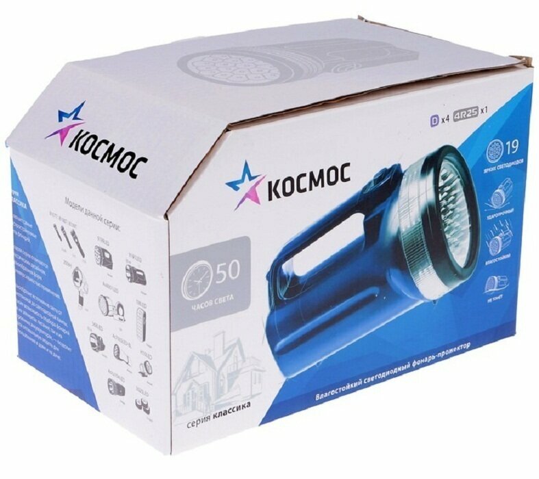 Космос фонарь-прожектор 860LED (4xR20, 4R25) 19св/д (160lm), синий/пластик, влагозащитный