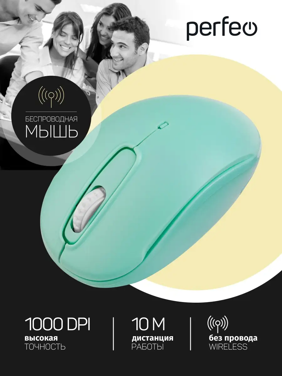 Мышь Мышь беспроводная оптическая Perfeo COMFORT, 3 кнопки, DPI 1000, USB, лайм