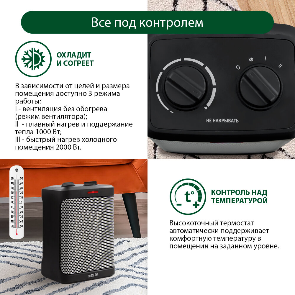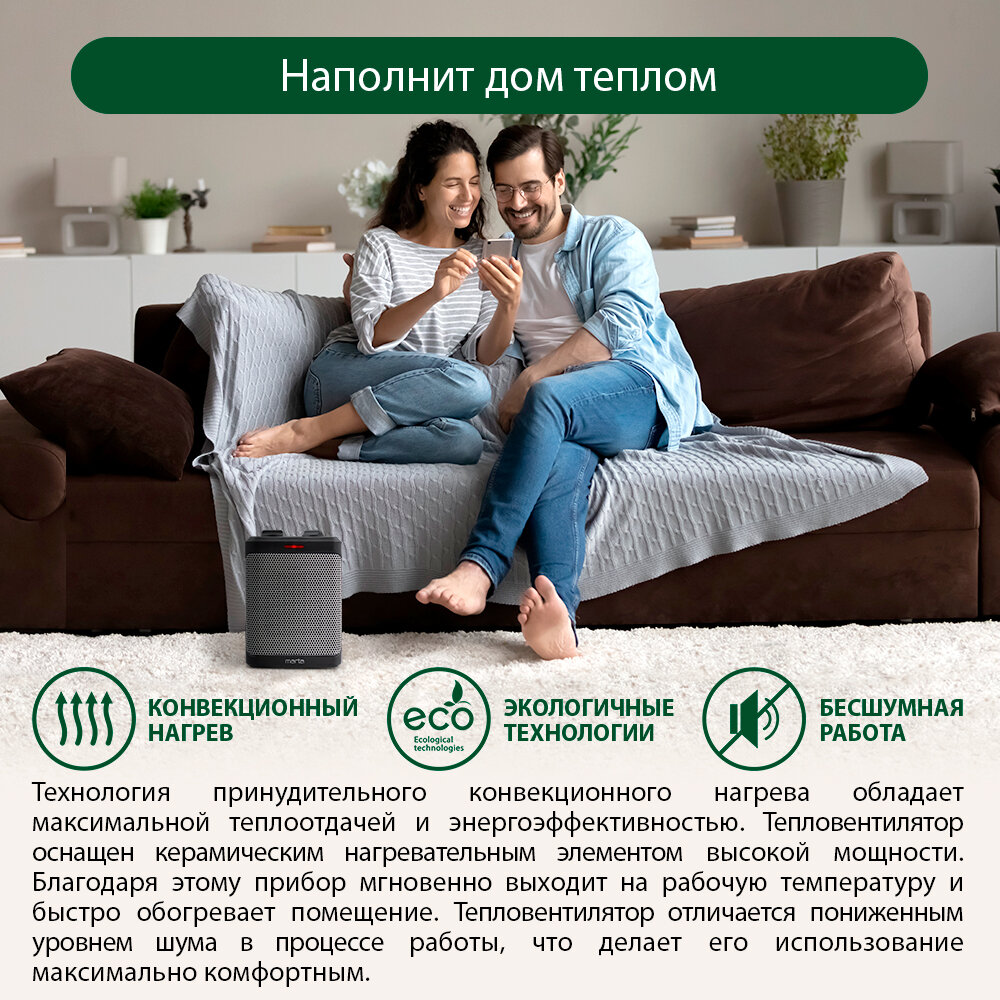 MARTA MT-2523 серебряный жемчуг тепловентилятор керамический интересное: