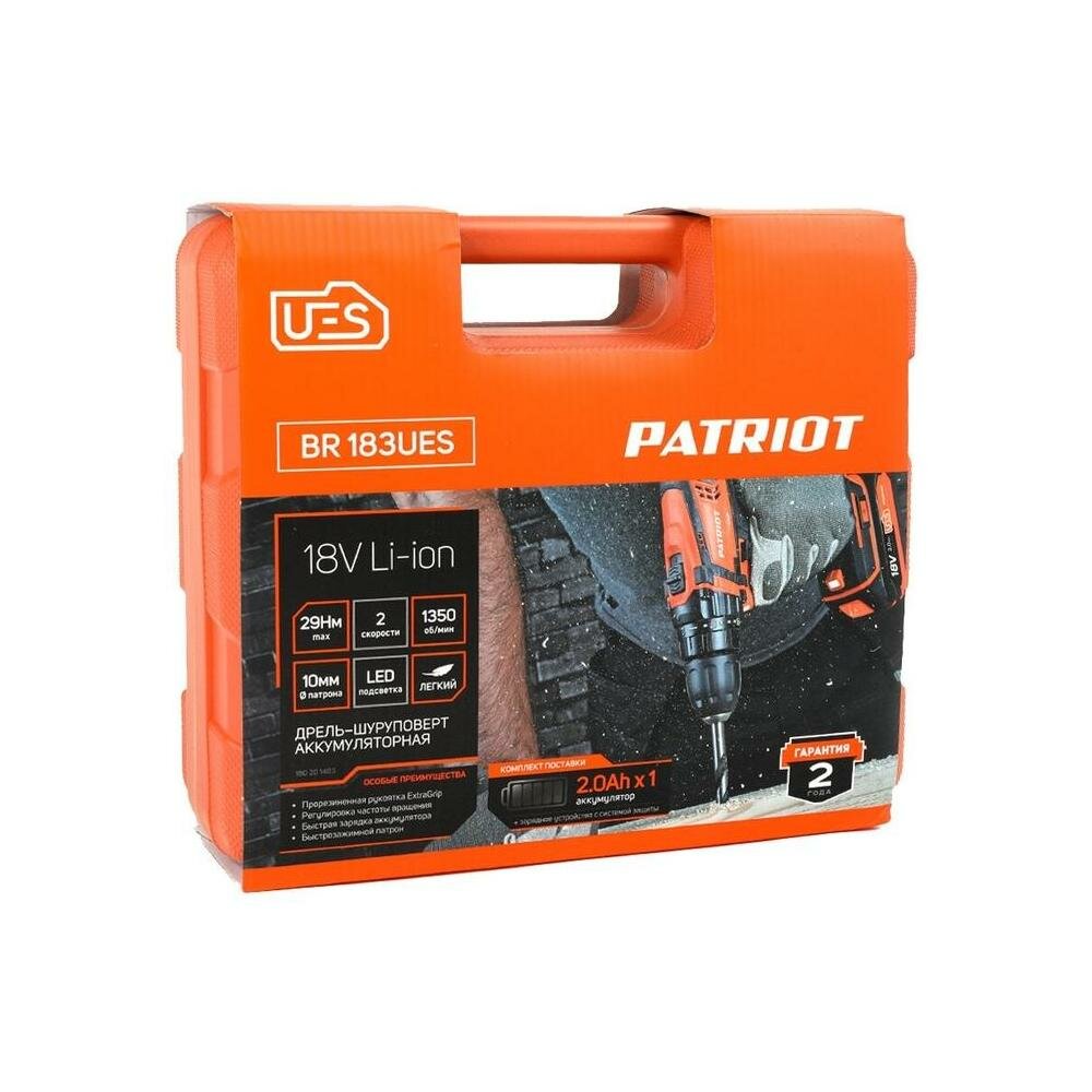 Дрель-шуруповерт аккумуляторная Patriot BR 183UES, 18 В, 1 x 2 Ач Li-ion, ЗУ
