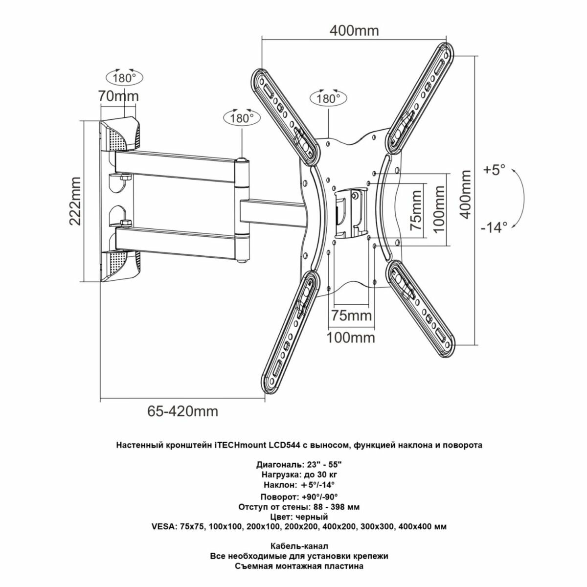 ITECHmount LCD544 черный кронштейн на стену для ТВ 23" - 55" интересное: