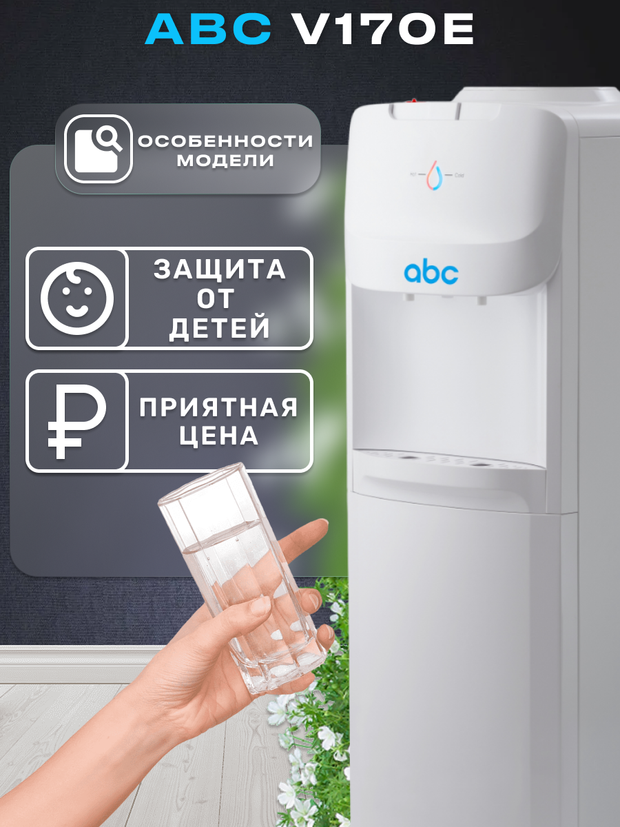 Ниже Вы можете прочитать отзывы на Кулер напольный ABC V170 E нагр. и охлажд. воды, ознакомится с подробными характеристиками, посмотреть интересные обзоры и фотографии на Кулер напольный ABC V170 E нагр. и охлажд. воды.