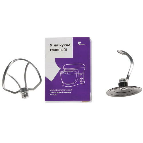 Миксер планетарный KITFORT КТ-3007-2, 1500 Вт, 6 скоростей, 3 насадки, металлическая чаша 4,2 л, серебро