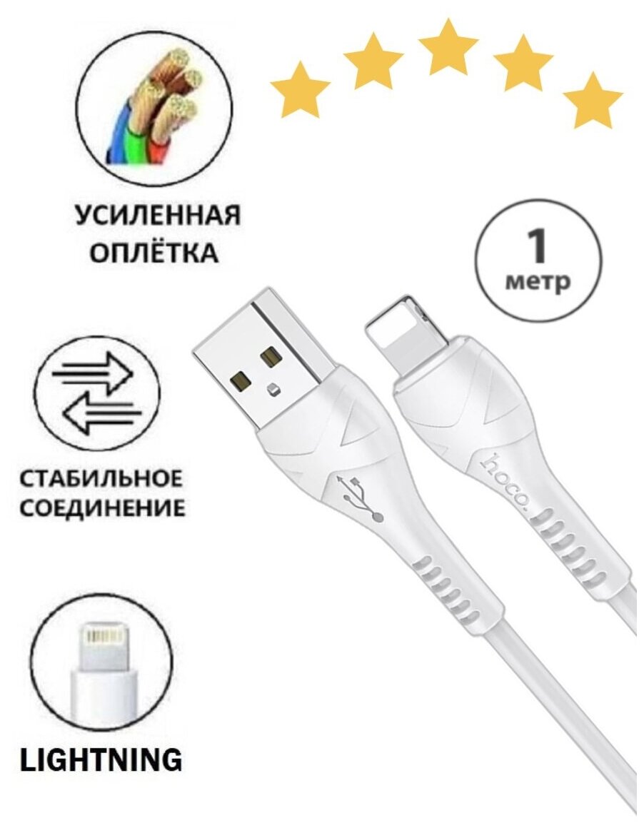 Кабель Hoco X37 USB - Lightning для быстрой зарядки Apple, iPhone, iPad, AirPods, кабель зарядка для айфон 1м 1 м, 1 шт, белый