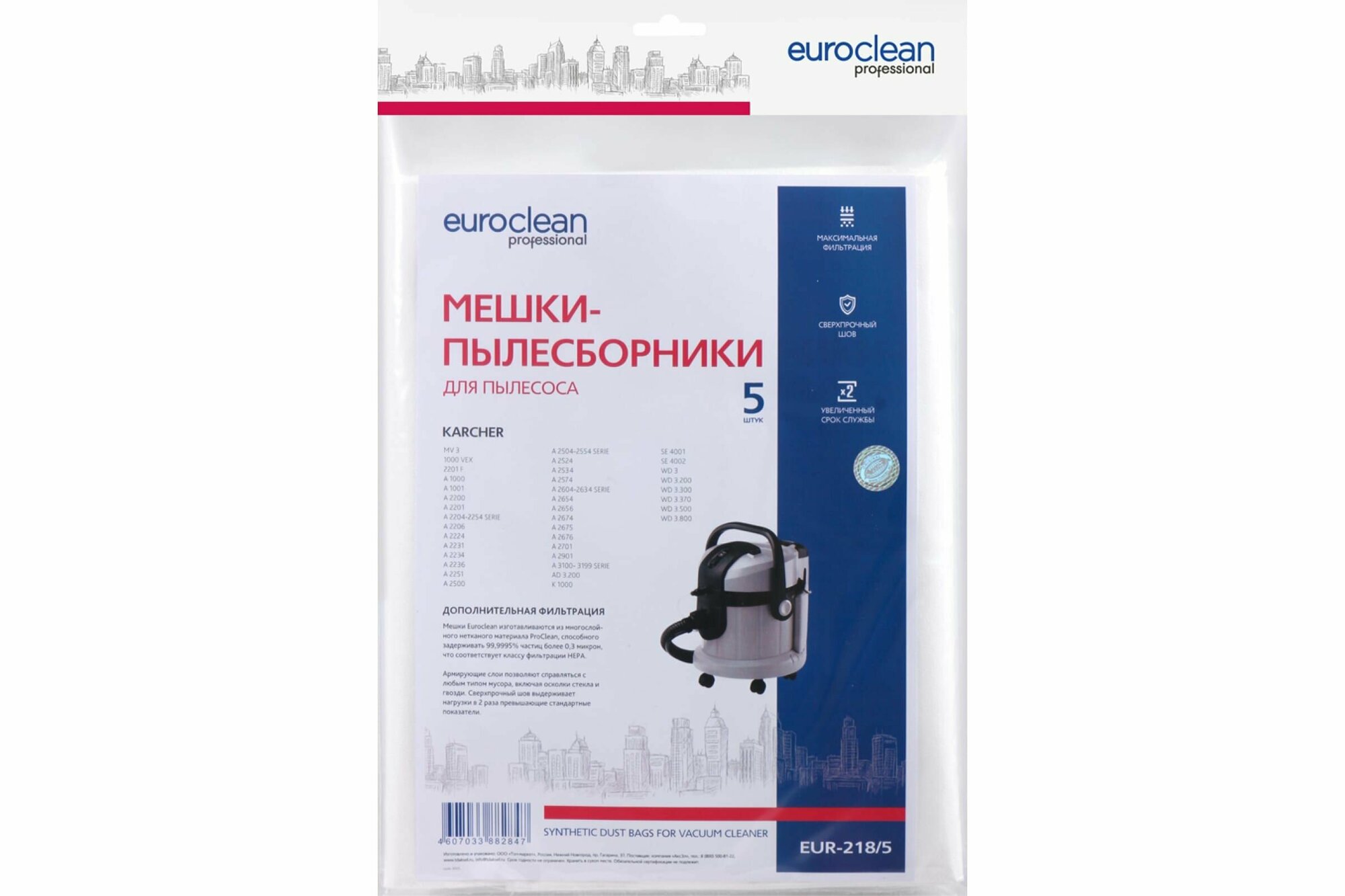 Мешок-пылесборник синтетич. EUR-218/5 EURO clean (Karcher MV 3 P, MV4, WD 3.200, WD 3.300, WD 3.50)