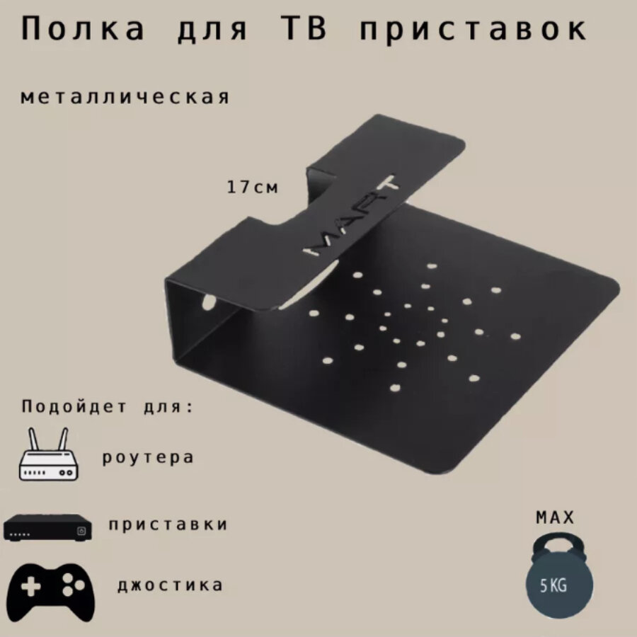 Полка для ТВ приставок металлическая, Mart 17x15x5 см до 5 кг интересное: