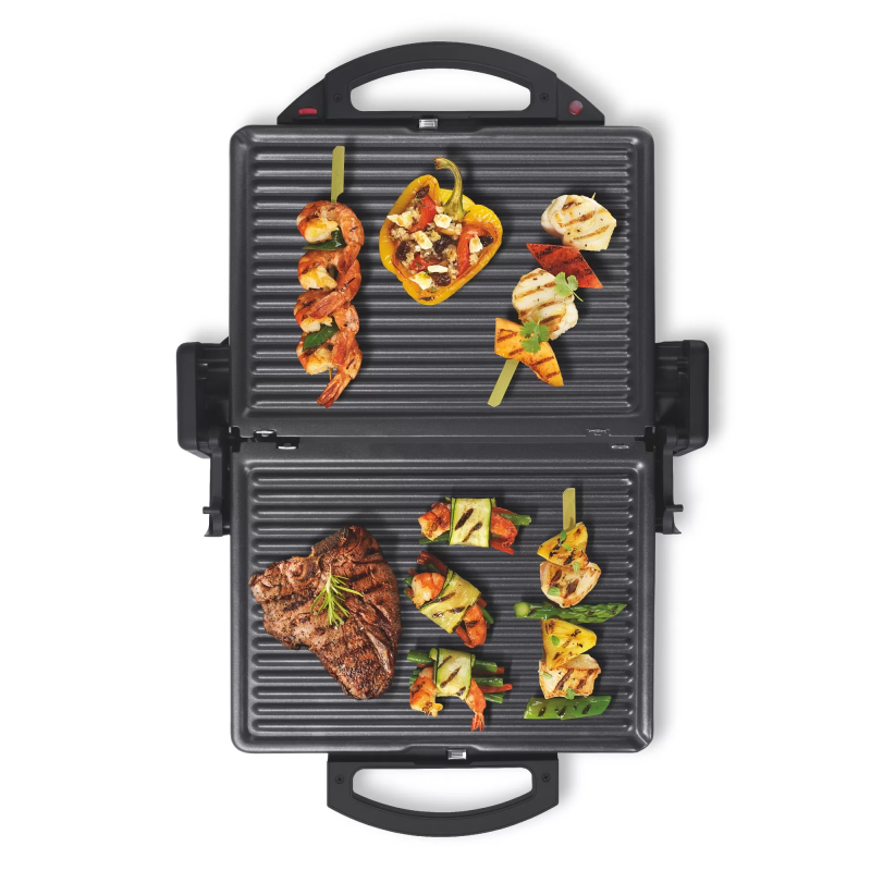 - съемные пластины(это было одним из критериев покупки - их удобно мыть) - возможность использовать ввиде разложенной горизонтальной поверхности (отличный вариант для стейков) - вертикальная парковка (очень компактно помещается в шкафу) |